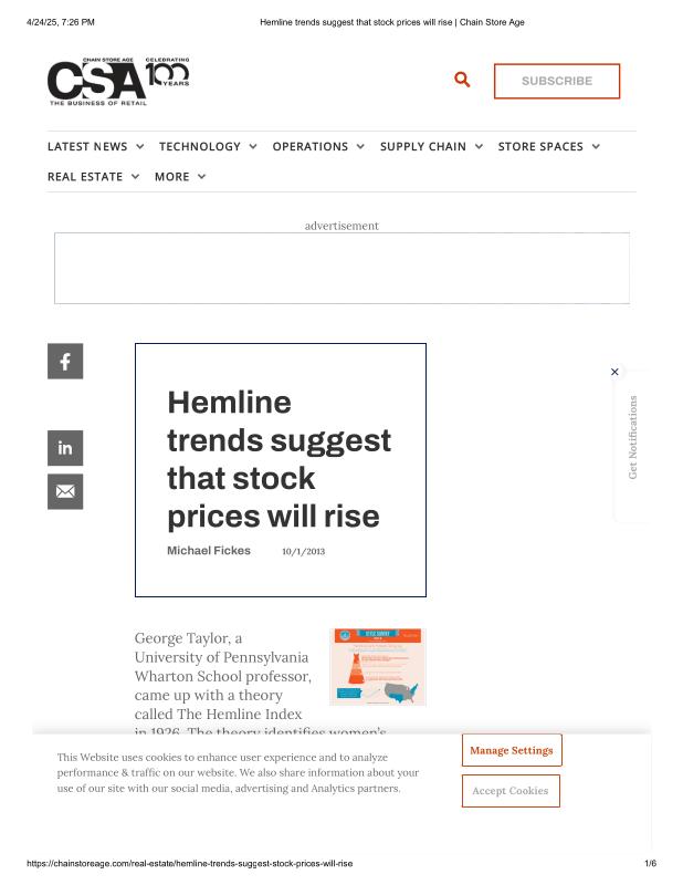 dropbox/COLLECTION- Research/Hemline Index/Hemline Index PDFs/2013.10.01 Hemline trends suggest that stock prices will rise _ Chain Store Age.pdf