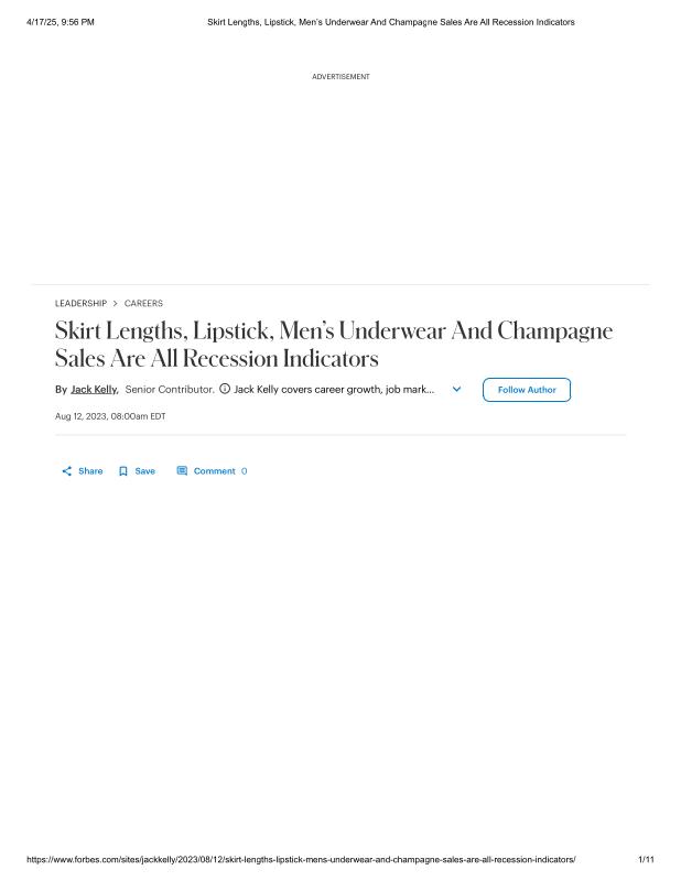 dropbox/COLLECTION- Research/Hemline Index/Hemline Index PDFs/2023.08.12 Skirt Lengths, Lipstick, Men’s Underwear And Champagne Sales Are All Recession Indicators.pdf