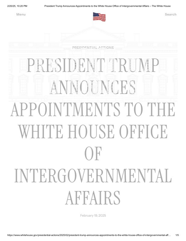 dropbox/COLLECTION- Government/The White House/Appointments/President Trump Announces Appointments to the White House Office of Intergovernmental Affairs – The White House.pdf