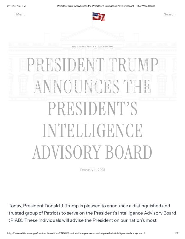 dropbox/COLLECTION- Government/The White House/Appointments/President Trump Announces the President’s Intelligence Advisory Board – The White House.pdf