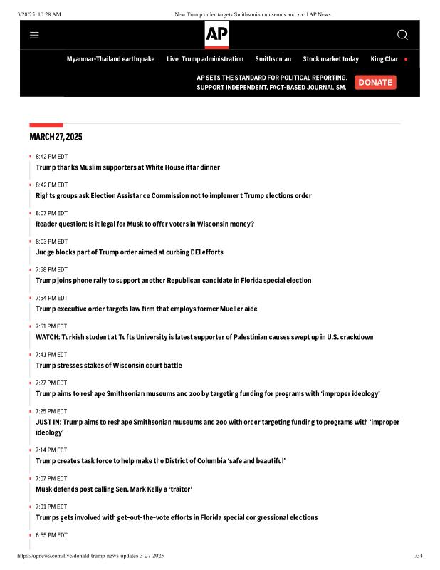 dropbox/COLLECTION- Government/The White House/EO's/trump smithsonian EO/New Trump order targets Smithsonian museums and zoo _ AP News.pdf
