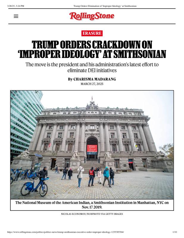 dropbox/COLLECTION- Government/The White House/EO's/trump smithsonian EO/Trump Orders Elimination of 'Improper Ideology’ at Smithsonian.pdf