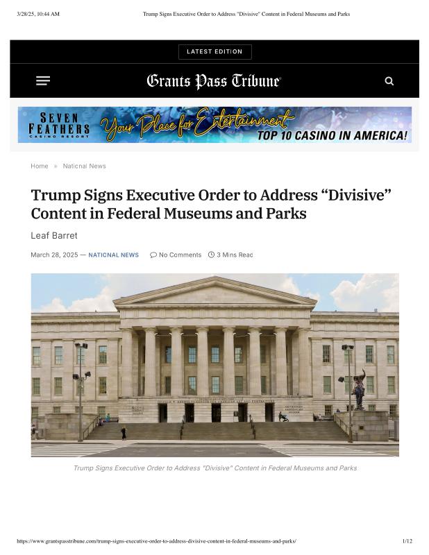 dropbox/COLLECTION- Government/The White House/EO's/trump smithsonian EO/Trump Signs Executive Order to Address _Divisive_ Content in Federal Museums and Parks.pdf