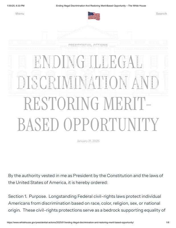 dropbox/COLLECTION- Government/The White House/Orders not Executive/Ending Illegal Discrimination And Restoring Merit-Based Opportunity – The White House.pdf