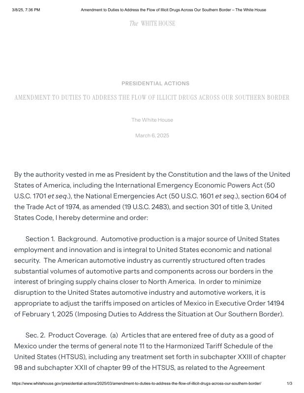 dropbox/COLLECTION- Government/The White House/EO's/Border and Immigration EOs/Amendment to Duties to Address the Flow of Illicit Drugs Across Our Southern Border – The White House.pdf
