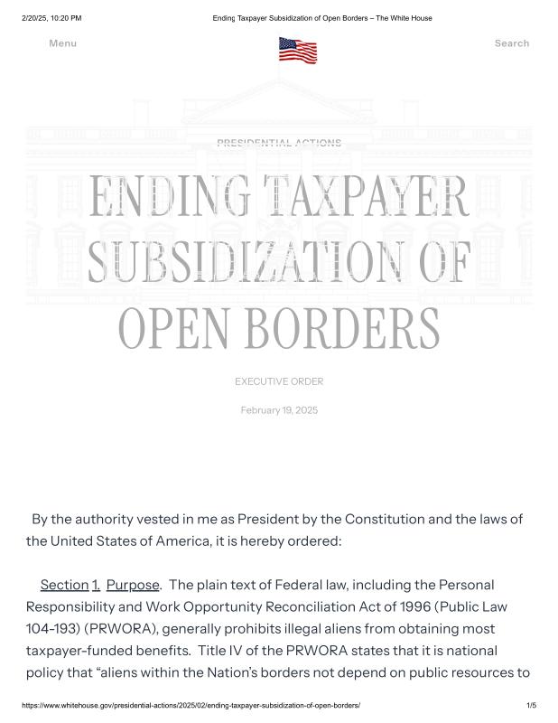 dropbox/COLLECTION- Government/The White House/EO's/Border and Immigration EOs/Ending Taxpayer Subsidization of Open Borders – The White House.pdf