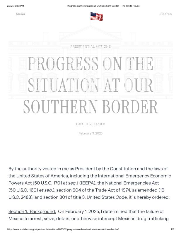 dropbox/COLLECTION- Government/The White House/EO's/Border and Immigration EOs/Progress on the Situation at Our Southern Border – The White House.pdf