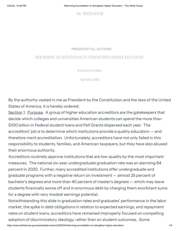 dropbox/COLLECTION- Government/The White House/EO's/Education EOs/Reforming Accreditation to Strengthen Higher Education – The White House.pdf