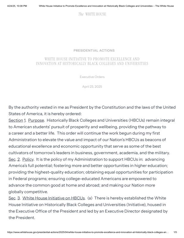 dropbox/COLLECTION- Government/The White House/EO's/Education EOs/White House Initiative to Promote Excellence and Innovation at Historically Black Colleges and Universities – The White House.pdf