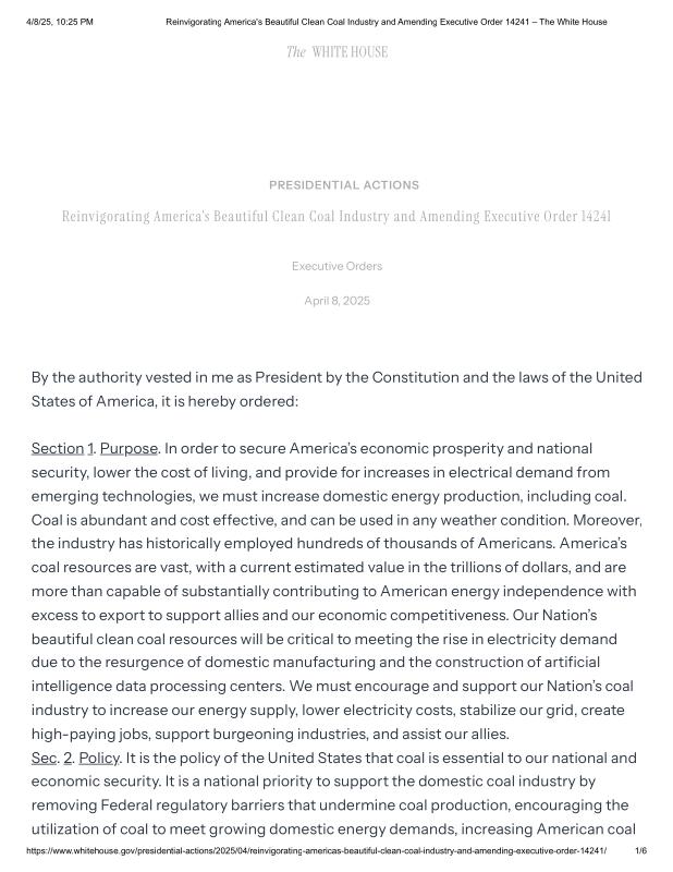 dropbox/COLLECTION- Government/The White House/EO's/Environmental EOs/Reinvigorating America's Beautiful Clean Coal Industry and Amending Executive Order 14241 – The White House.pdf