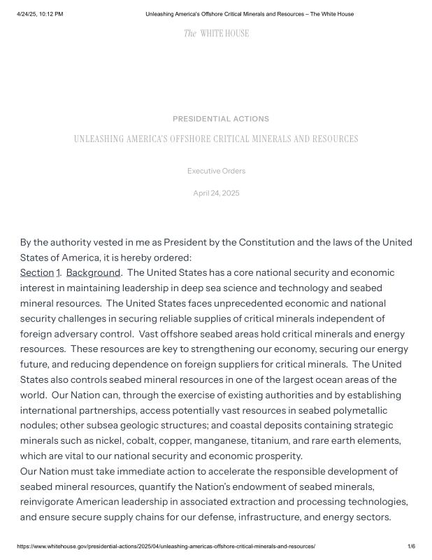 dropbox/COLLECTION- Government/The White House/EO's/Environmental EOs/Unleashing America's Offshore Critical Minerals and Resources – The White House.pdf