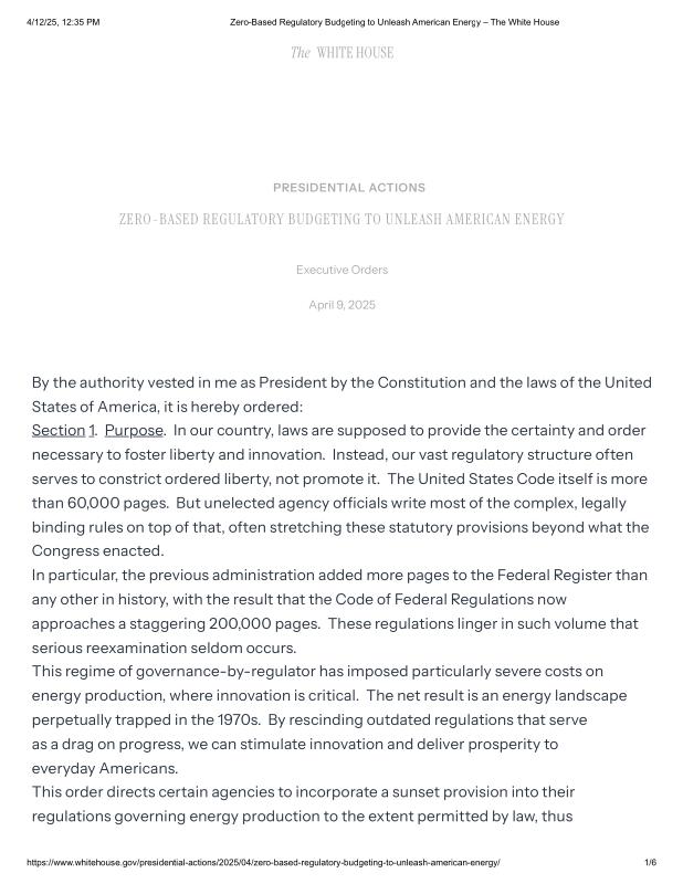 dropbox/COLLECTION- Government/The White House/EO's/Environmental EOs/Energy/Zero-Based Regulatory Budgeting to Unleash American Energy – The White House.pdf