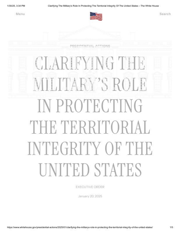 dropbox/COLLECTION- Government/The White House/EO's/First Week EO's/Clarifying The Military's Role In Protecting The Territorial Integrity Of The United States – The White House.pdf