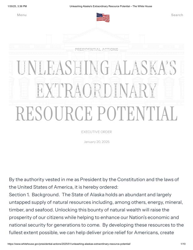 dropbox/COLLECTION- Government/The White House/EO's/First Week EO's/Unleashing Alaska's Extraordinary Resource Potential – The White House.pdf