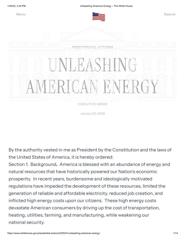 dropbox/COLLECTION- Government/The White House/EO's/First Week EO's/Unleashing American Energy – The White House.pdf