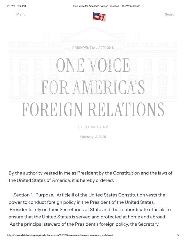 dropbox/COLLECTION- Government/The White House/EO's/International Relations EOs/One Voice for America's Foreign Relations – The White House.pdf