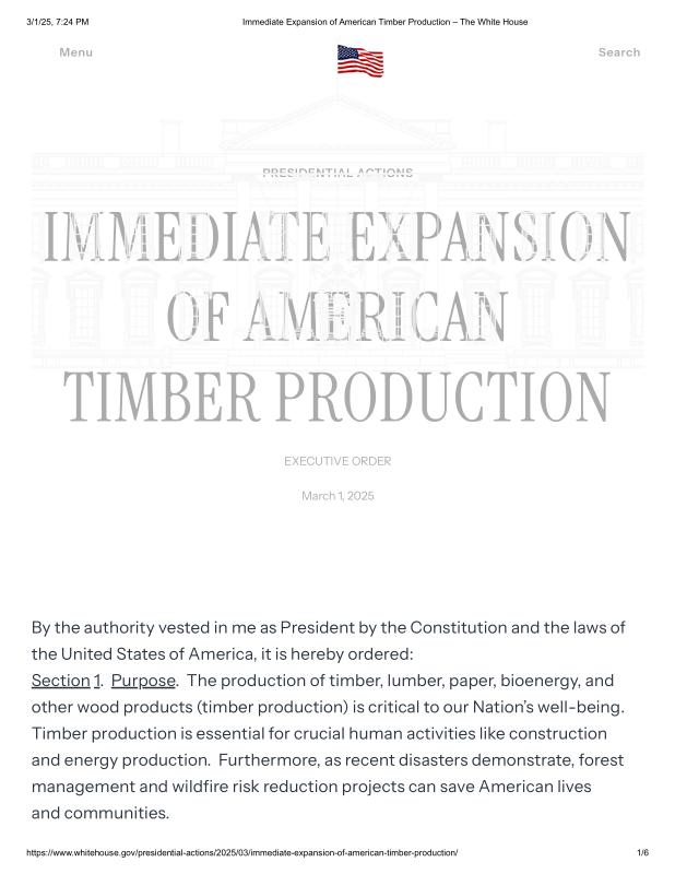 dropbox/COLLECTION- Government/The White House/EO's/Tariffs, Trade, and National Debt EOs/Immediate Expansion of American Timber Production – The White House.pdf