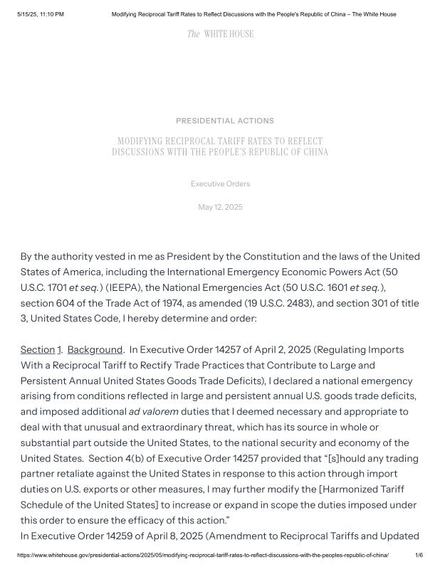 dropbox/COLLECTION- Government/The White House/EO's/Tariffs, Trade, and National Debt EOs/Modifying Reciprocal Tariff Rates to Reflect Discussions with the People's Republic of China – The White House (1).pdf