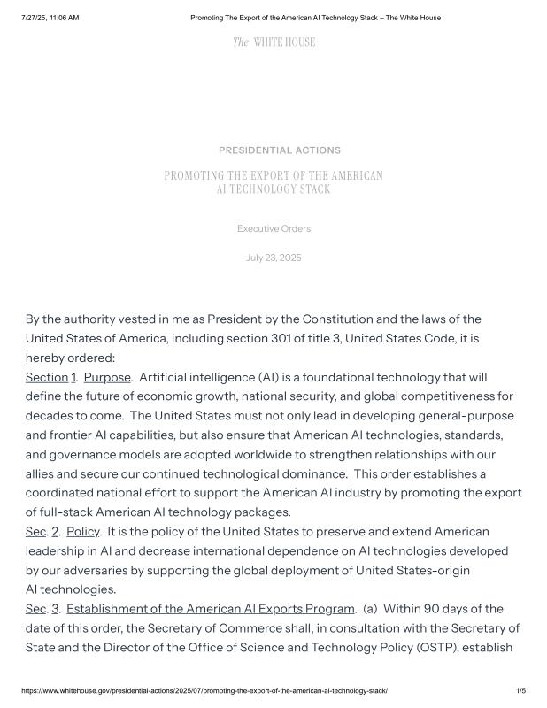 dropbox/COLLECTION- Government/The White House/EO's/Tariffs, Trade, and National Debt EOs/Promoting The Export of the American AI Technology Stack – The White House.pdf