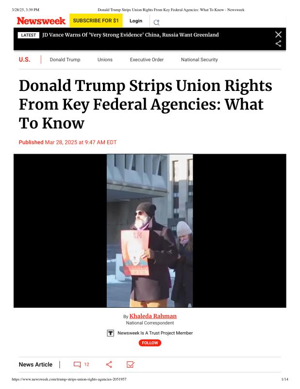 dropbox/COLLECTION- Government/The White House/EO's/trump EO union bargaining/Donald Trump Strips Union Rights From Key Federal Agencies_ What To Know - Newsweek.pdf