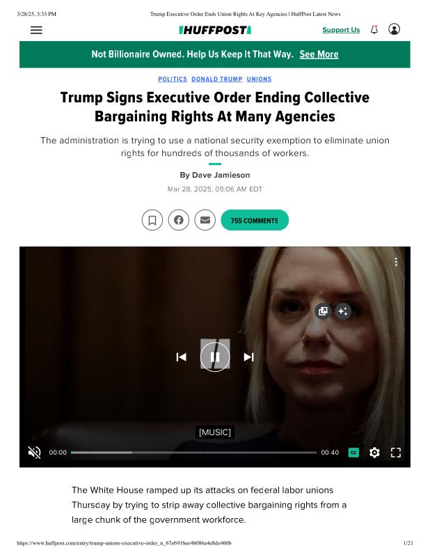 dropbox/COLLECTION- Government/The White House/EO's/trump EO union bargaining/Trump Executive Order Ends Union Rights At Key Agencies _ HuffPost Latest News.pdf