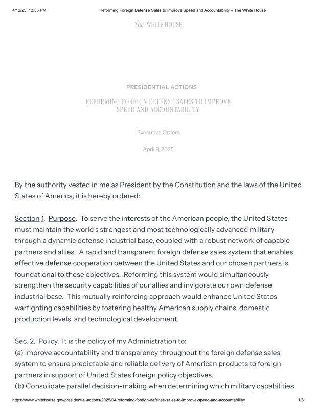 dropbox/COLLECTION- Government/The White House/EO's/Weapons and Defense EOs/Reforming Foreign Defense Sales to Improve Speed and Accountability – The White House.pdf