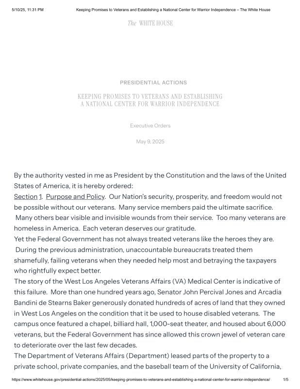 dropbox/COLLECTION- Government/The White House/EO's/Keeping Promises to Veterans and Establishing a National Center for Warrior Independence – The White House.pdf