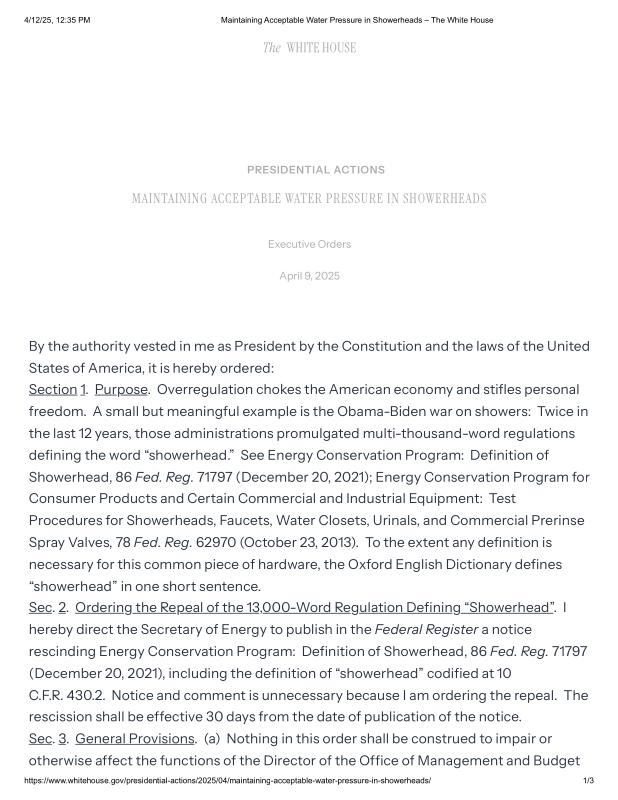 dropbox/COLLECTION- Government/The White House/EO's/Maintaining Acceptable Water Pressure in Showerheads – The White House.pdf