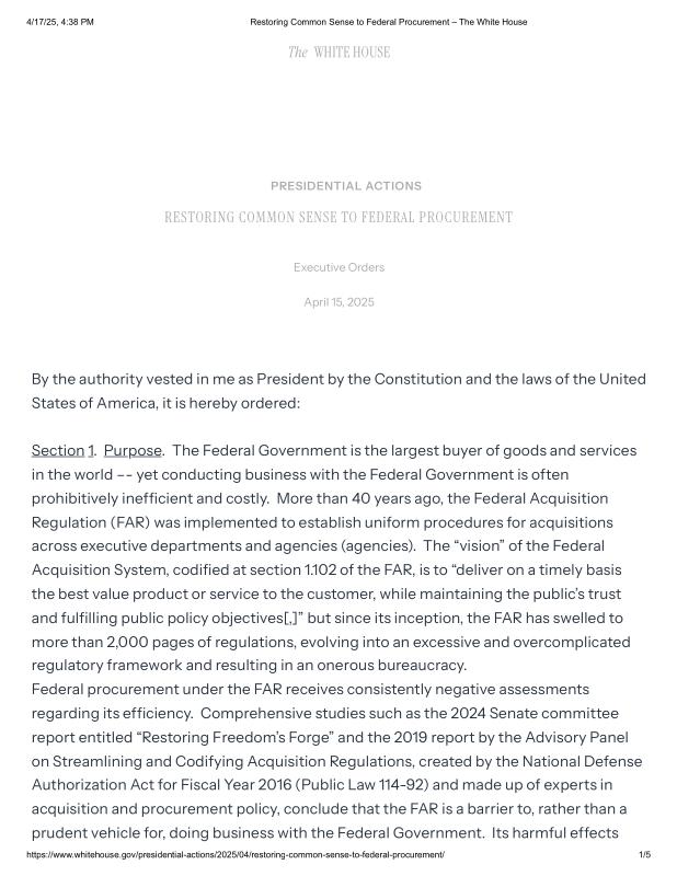 dropbox/COLLECTION- Government/The White House/EO's/Restoring Common Sense to Federal Procurement – The White House.pdf