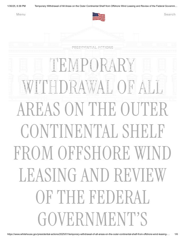 dropbox/COLLECTION- Government/The White House/Memorandums/Energy Memorandums/Temporary Withdrawal of All Areas on the Outer Continental Shelf from Offshore Wind Leasing and Review of the Federal Government's Leasing and Permitting Practices for Wind Projects – The White House.pdf
