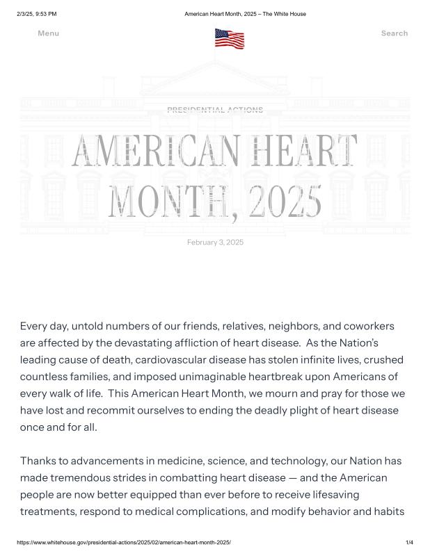 dropbox/COLLECTION- Government/The White House/Proclamations/American Heart Month, 2025 – The White House.pdf