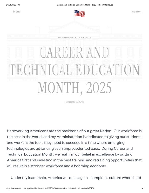 dropbox/COLLECTION- Government/The White House/Proclamations/Career and Technical Education Month, 2025 – The White House.pdf