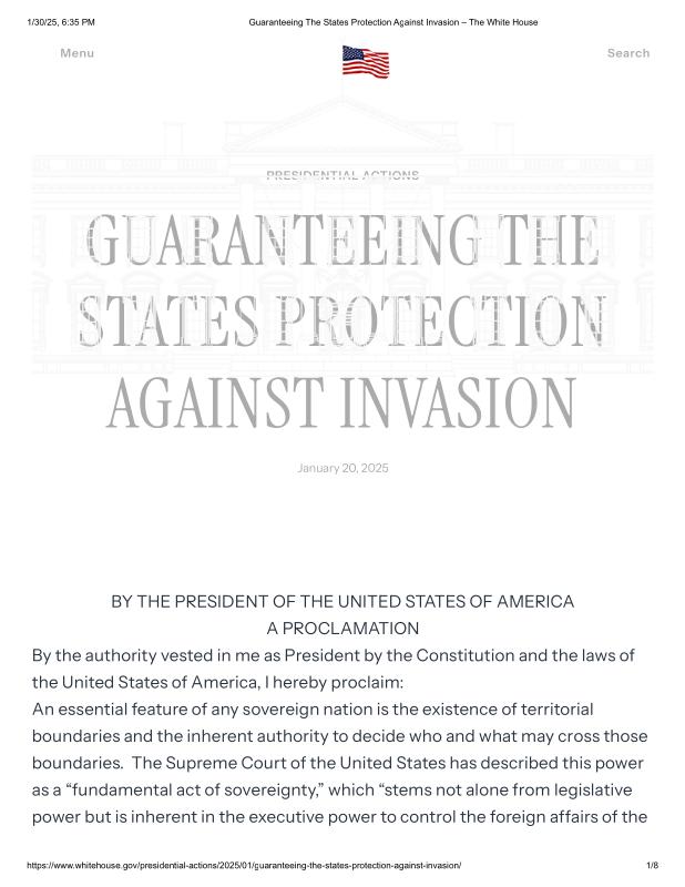 dropbox/COLLECTION- Government/The White House/Proclamations/Guaranteeing The States Protection Against Invasion – The White House.pdf