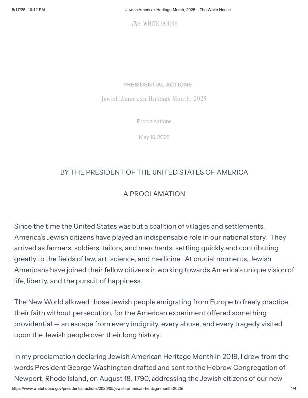 dropbox/COLLECTION- Government/The White House/Proclamations/Jewish American Heritage Month, 2025 – The White House.pdf