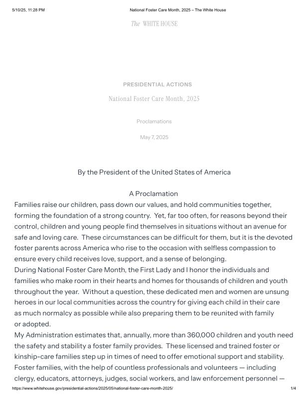 dropbox/COLLECTION- Government/The White House/Proclamations/National Foster Care Month, 2025 – The White House.pdf