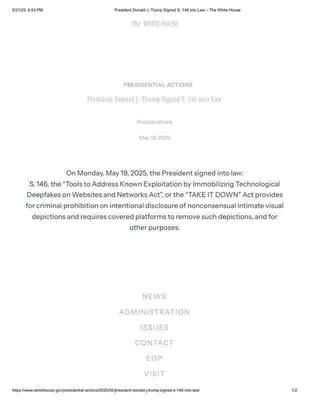 dropbox/COLLECTION- Government/The White House/Proclamations/President Donald J. Trump Signed S. 146 into Law – The White House.pdf