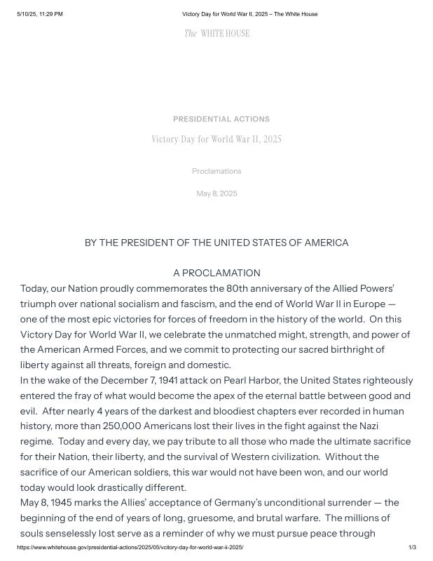 dropbox/COLLECTION- Government/The White House/Proclamations/Victory Day for World War II, 2025 – The White House.pdf