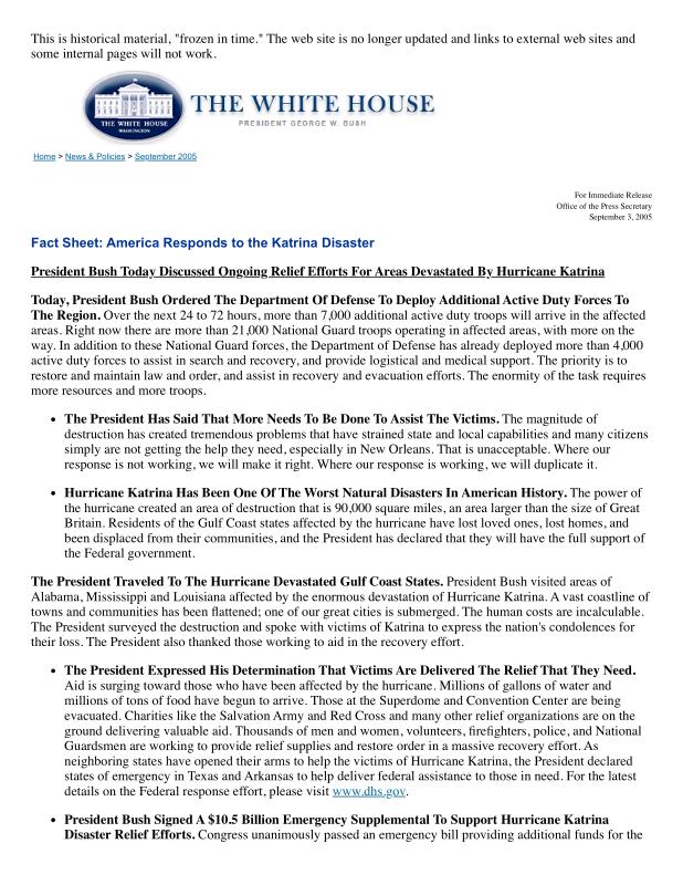 dropbox/COLLECTION- Research/Katrina Batch 1/bush white house/Fact Sheet_ America Responds to the Katrina Disaster.pdf