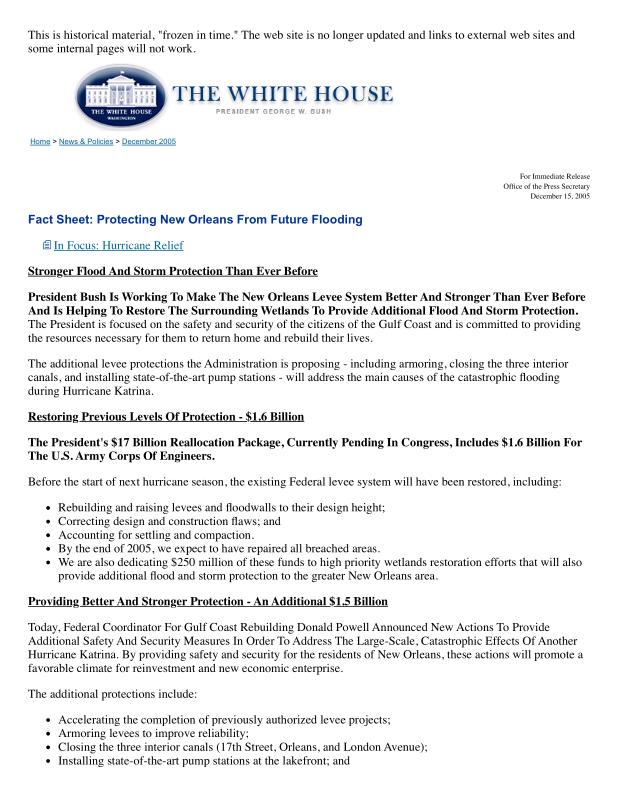 dropbox/COLLECTION- Research/Katrina Batch 1/bush white house/Fact Sheet_ Protecting New Orleans From Future Flooding.pdf