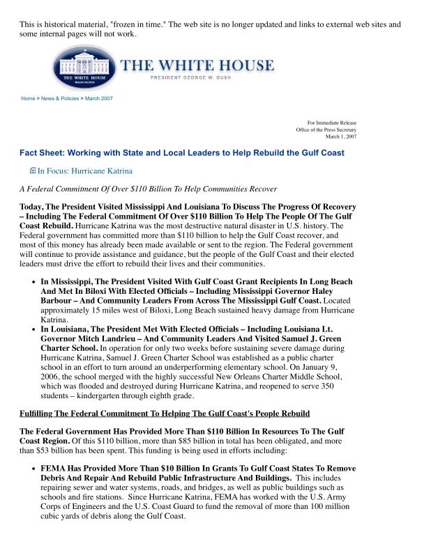 dropbox/COLLECTION- Research/Katrina Batch 1/bush white house/Fact Sheet_ Working with State and Local Leaders to Help Rebuild the Gulf Coast.pdf