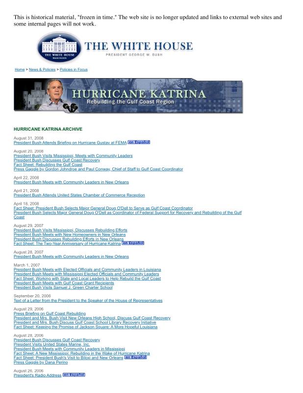 dropbox/COLLECTION- Research/Katrina Batch 1/bush white house/Hurricane Katrina Archive.pdf