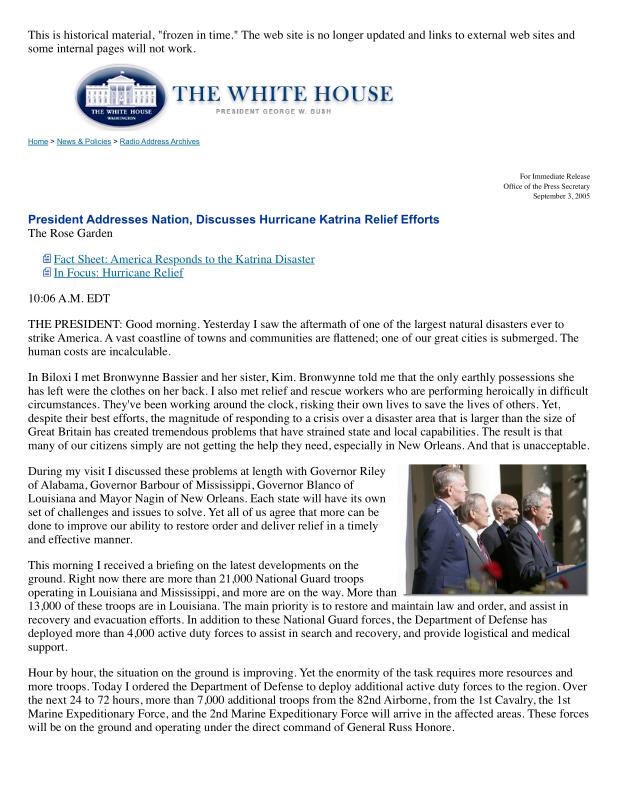 dropbox/COLLECTION- Research/Katrina Batch 1/bush white house/President Addresses Nation, Discusses Hurricane Katrina Relief Efforts.pdf