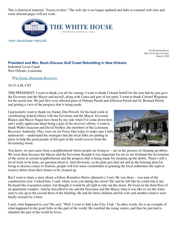 dropbox/COLLECTION- Research/Katrina Batch 1/bush white house/President and Mrs. Bush Discuss Gulf Coast Rebuilding in New Orleans.pdf