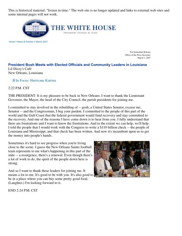dropbox/COLLECTION- Research/Katrina Batch 1/bush white house/President Bush Meets with Elected Officials and Community Leaders in Louisiana.pdf