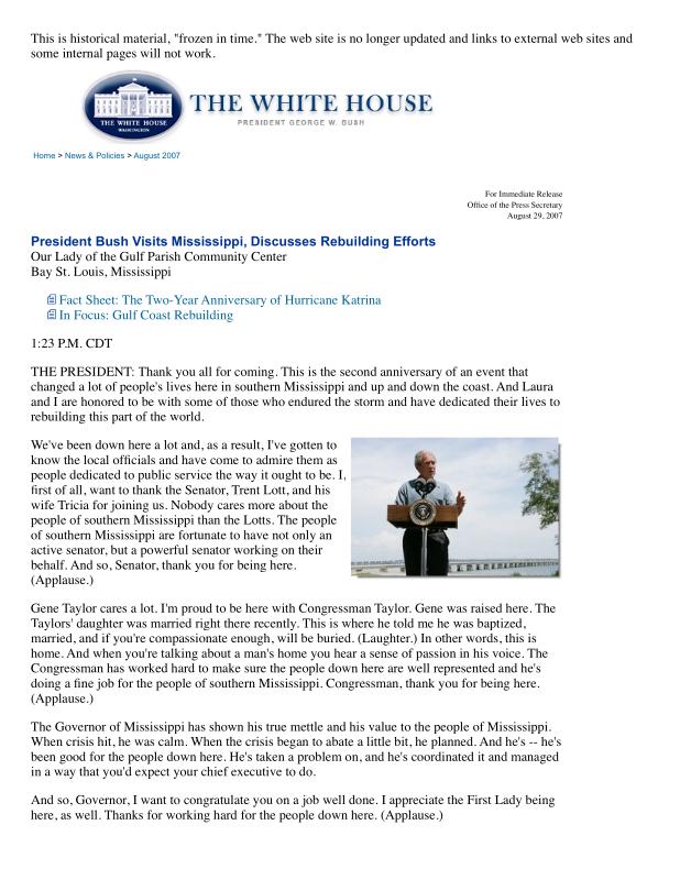 dropbox/COLLECTION- Research/Katrina Batch 1/bush white house/President Bush Visits Mississippi, Discusses Rebuilding Efforts.pdf