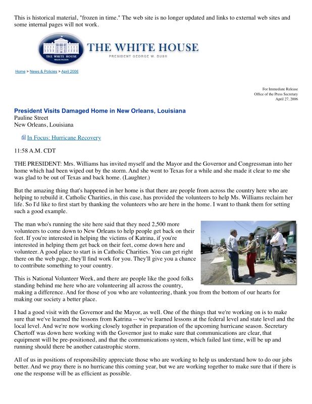 dropbox/COLLECTION- Research/Katrina Batch 1/bush white house/President Visits Damaged Home in New Orleans, Louisiana.pdf