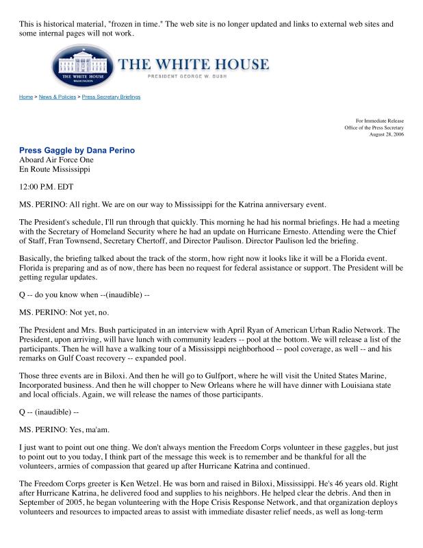 dropbox/COLLECTION- Research/Katrina Batch 1/bush white house/Press Gaggle by Dana Perino.pdf