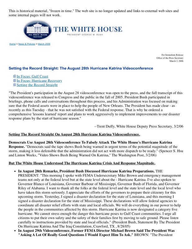 dropbox/COLLECTION- Research/Katrina Batch 1/bush white house/Setting the Record Straight_ The August 28th Hurricane Katrina Videoconference.pdf