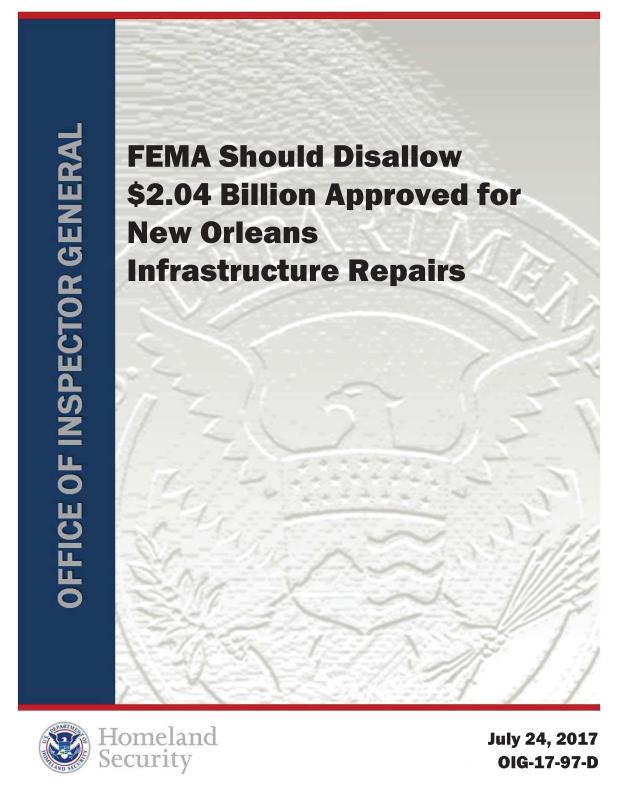 dropbox/COLLECTION- Research/Katrina Batch 1/Dept of Homeland Security Katrina/OIG-17-97-D - FEMA Should Disallow $2.04 Billion Approved for New Orleans Infrastructure Repairs.pdf