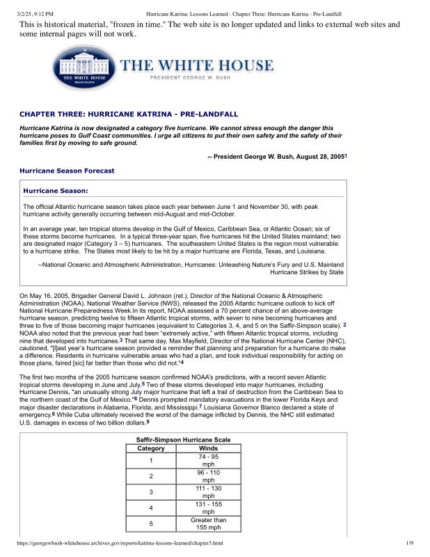 dropbox/COLLECTION- Research/Katrina Batch 1/White House katrina/Hurricane Katrina_ Lessons Learned - Chapter Three_ Hurricane Katrina - Pre-Landfall.pdf